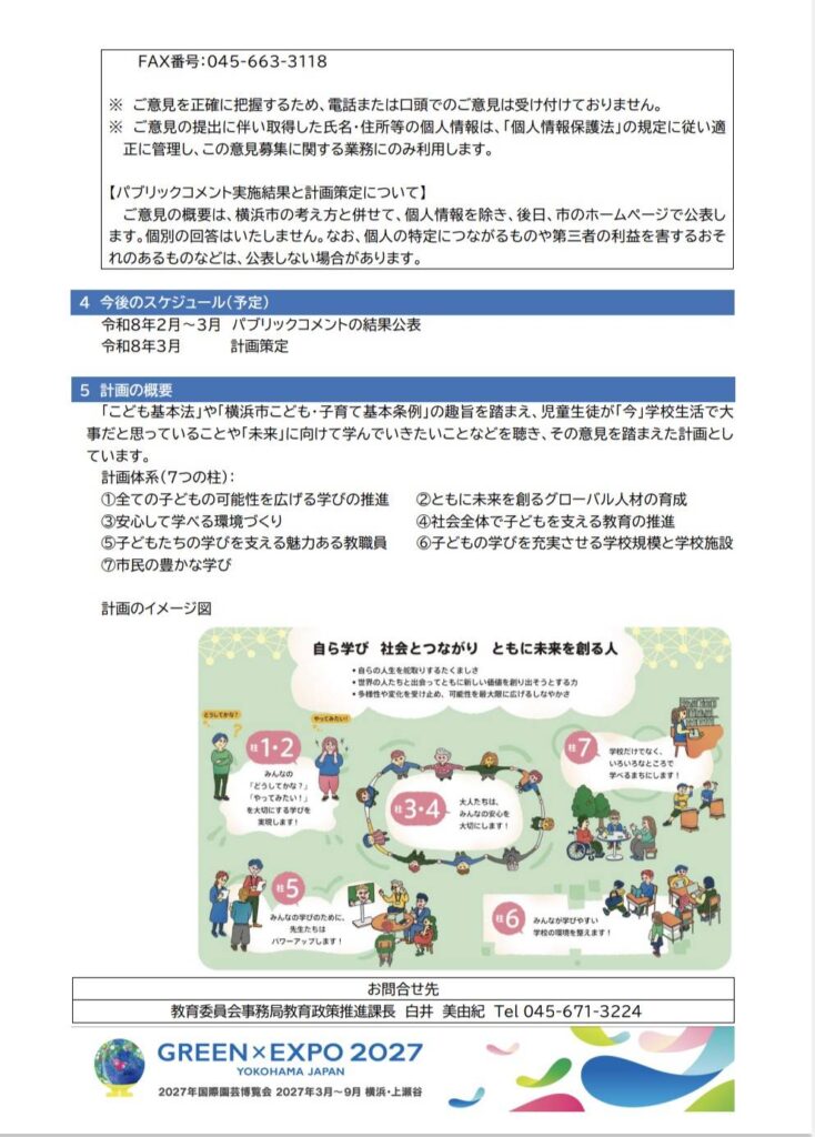 https://www.city.yokohama.lg.jp/kosodate-kyoiku/kyoiku/plankoho/plan/kyoikuplan/5th-kyouikuplan.html【募集期間】